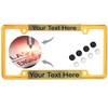 Personalized with Custom Text Design - Thin Top | Narrow Top 4 Hole Gold Metal Laser Engraved Standard Size - Car/Automobile License Plate Frame with Free caps - Gold/Black Text (Qty: 1 Frame)