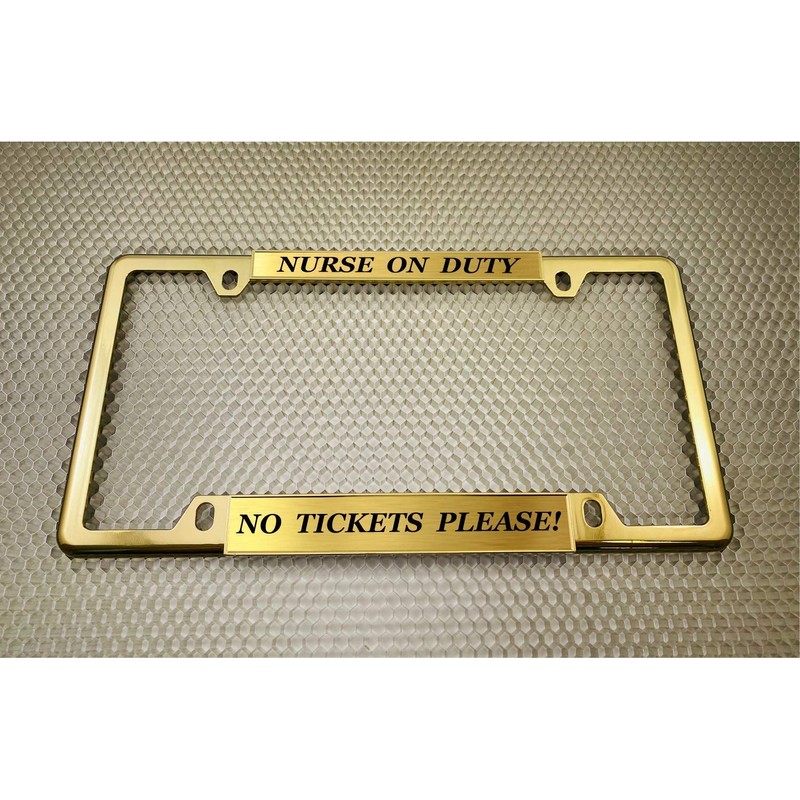 - TECHNOLOGY - Very Durable, High-Quality product. Please note: this isn’t a cheap printed sticker, the message of your choice will be laser engraved into UV stable and Weather Resistant outdoor-grade American-made acrylic and then bonded to the frame with an exterior grade oil-resistant 3M adhesive. Your custom frame will not fade, rust or tarnish.