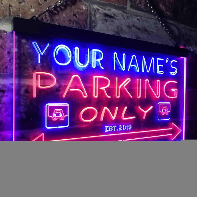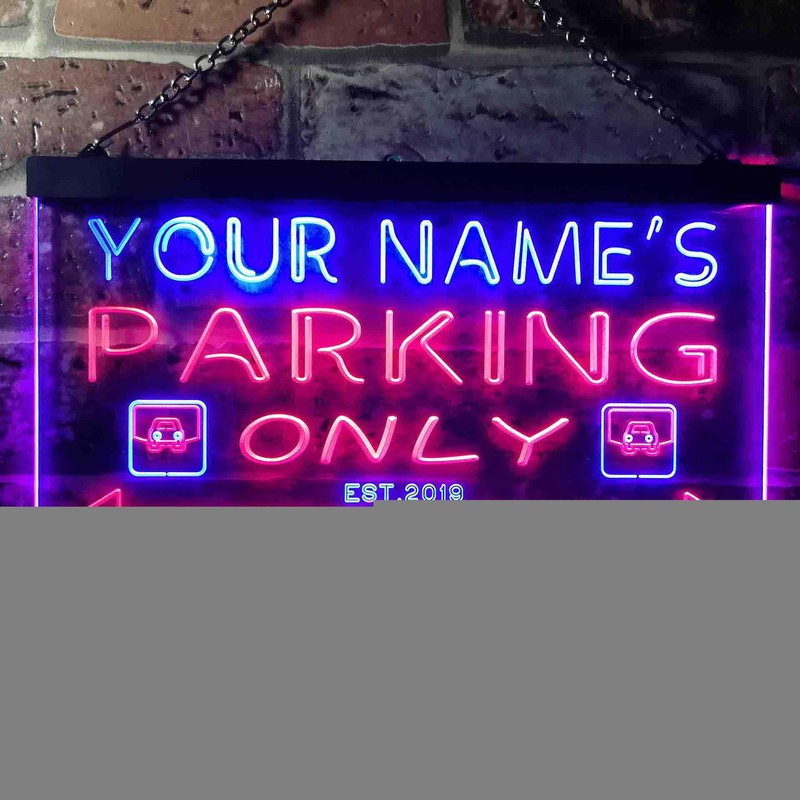 Personalized Your Name Est Year Theme Parking Space Garage Dual Color LED Neo...