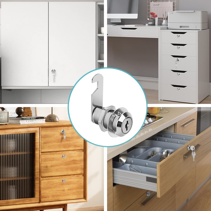 • ★STURDY & DURABLE: These keyed alike cam locks are waterproof and rustproof, constructed of diecast and steel components with a stainless finish, chrome-plated, resisting corrosion and wear for long-term use, which is perfect for keeping your small items safe and protecting your kids from dangerous items. Besides, each cam lock is equiped with a non-slip spur washer, which make the lock installation firmer.