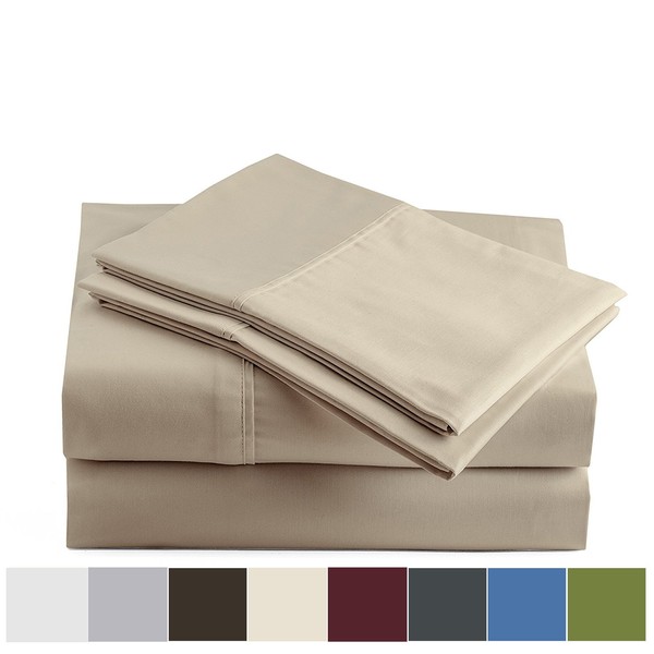Peru Pima - 600 Thread Count Sateen - 100% Peruvian Pima Cotton - Queen Bed Sheet Set, Latte