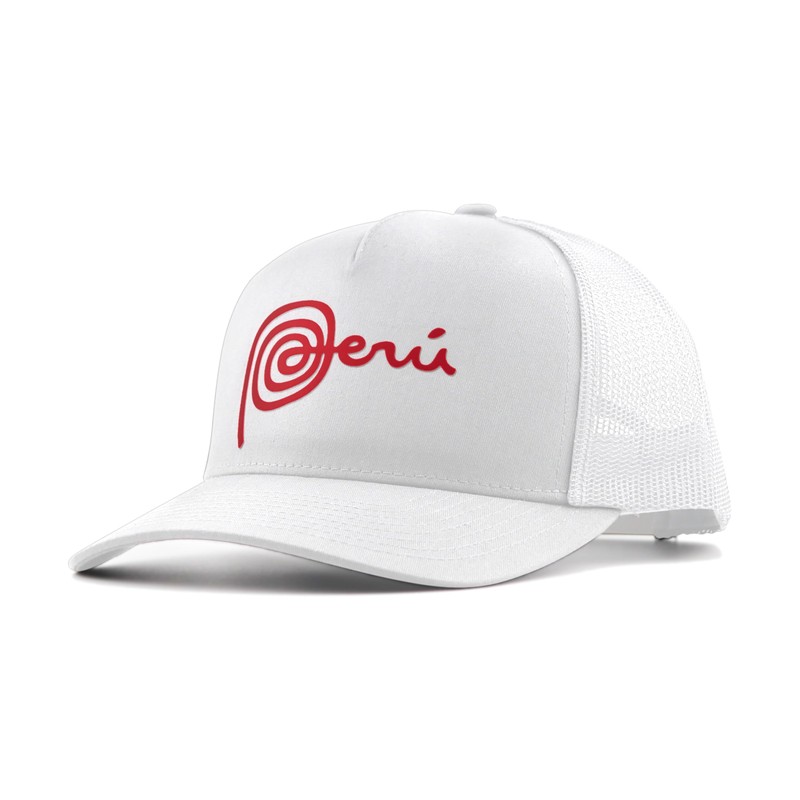 PeruCoUSA Marca Peru Hat — Trucker Mesh Snapback Cap — Adjustable — Gorras Peruanas (White)
