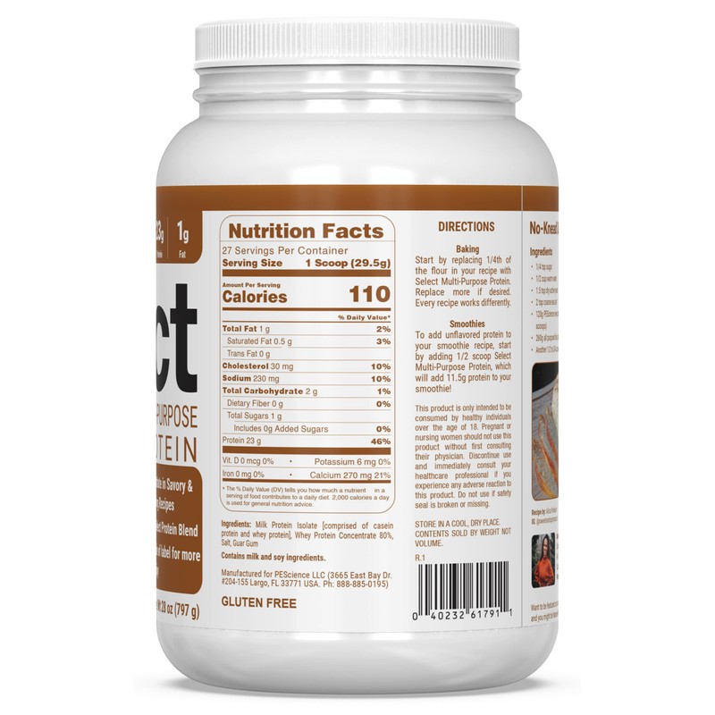 PEScience PEScience Select Multi-Purpose Unflavored Protein Powder, 27 Serving, Low Carb, Keto Friendly, and Gluten Free