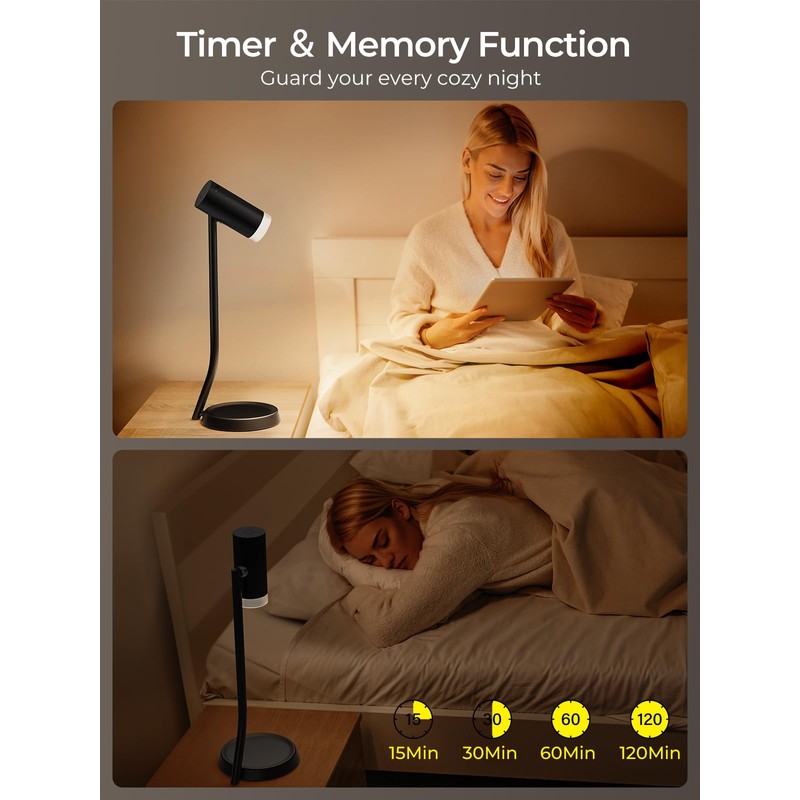 - [Dual Control Options] Switch between 3000K-6000K color temps (warm white/natural white/cold white) with a tap, or hold to stepless dimming (10%-100%). The led table light also included remote adds timer & memory functions—adjust lights from bed for effortless sleep aid.