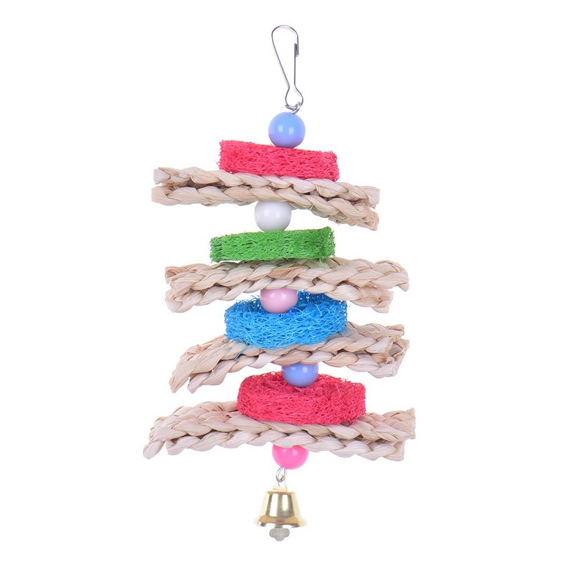Pet Bird Parrot Bite Swing Chewing Toy Natural Sepa Takraw with Swing Bell