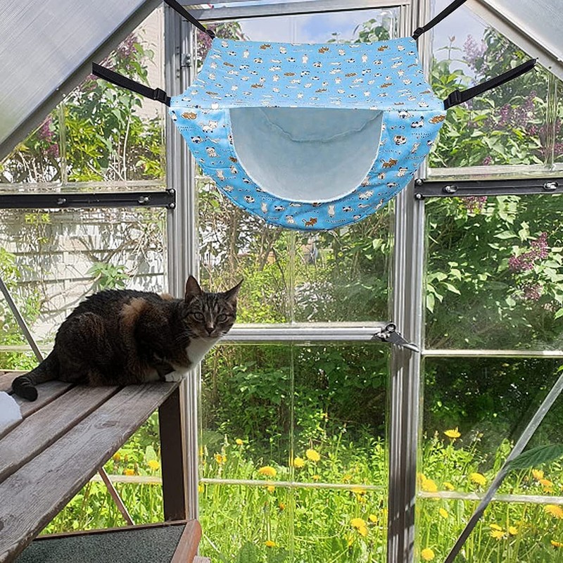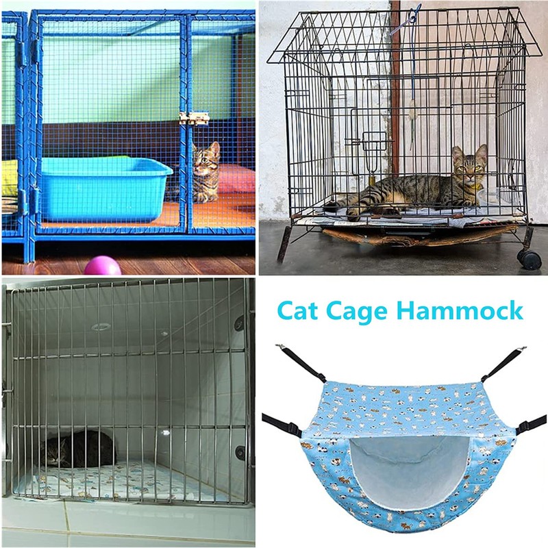 - 【High quality durable materia】 The cat cage hammock is made of quality fabric material with double-layer design, the outer layer made of quality and breathable material makes it cool to use in summer, imitation wool material inside provides a soft and warm surrounding for your cat, comfortable to use in winter.
