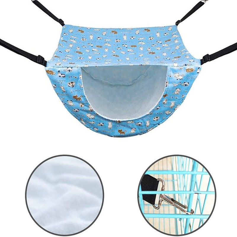 Pet Cage Hammock, 2 Tier Hanging Breathable Small Animal Sleeping Bag Cat Cage, Chair Hammock with Adjustable Belt, for Puppy Kitten Rabbit (Blue cat)