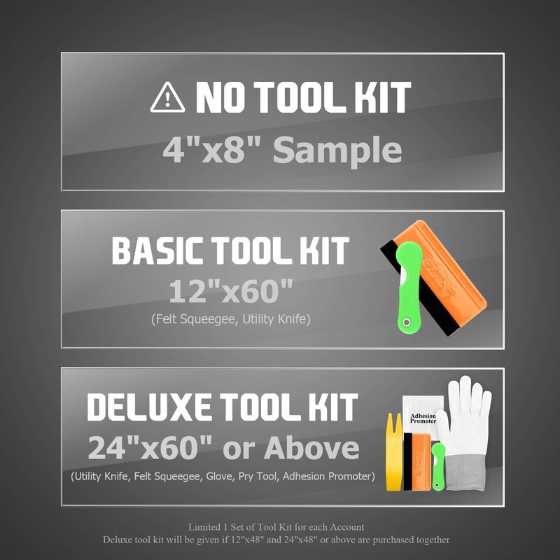 - Free Tool Kit Requirement: Size 4"x8" DO NOT come with Tool Kit; Limited 1 Set of Tool Kit for each Account ONLY regardless of quantity purchase
