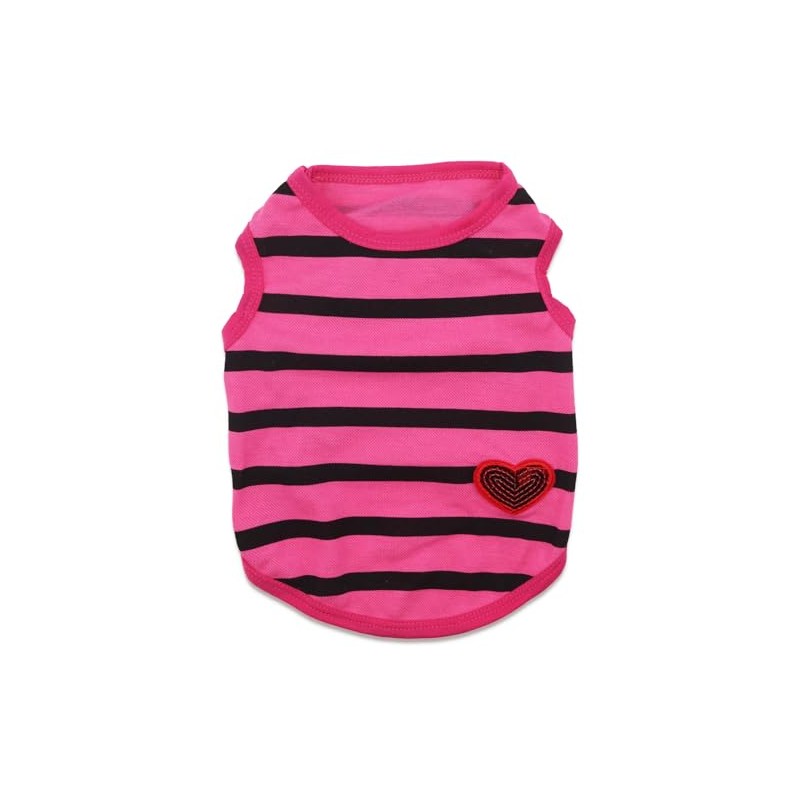 Pet Dog Striped T-Shirt Dogs Cats Cotton Vest Spring Summer Pet Apparel Tee Shirt Suitable for Small Medium Large Pets French Bulldog Bichon Clothes, Rose, Large