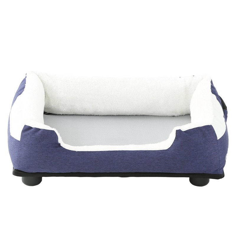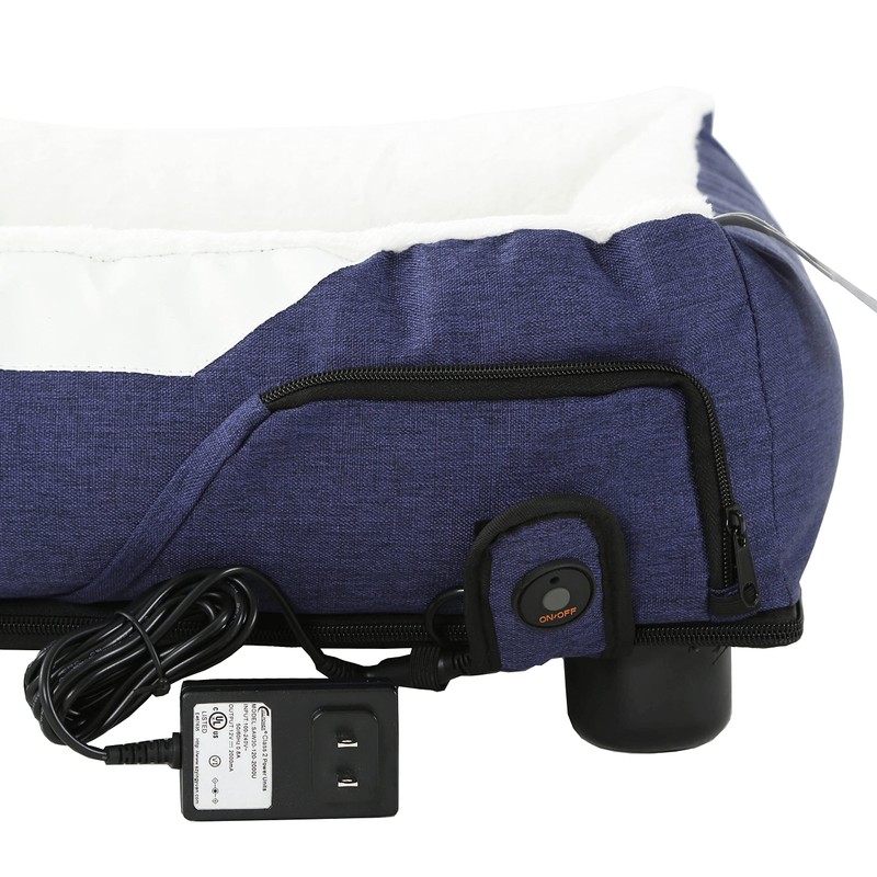 Pet Life Dream Smart Navy Pet Bed The Pet Life Dream Smart Electronic Pet Bed is a smart and innovative electronic heating and cooling system built-into the bed that activates at the press of a button. When 'Cooling Mode' is activated the button turns BLUE and a silently powered fan located beneath the bed begins to apply cooling ventilation through the mesh cushion. When set to 'Heating Mode' the button turns RED and the built-in heating nodes are activated and lightly penetrate through the ventilated mesh fabric and gently warms the cushion. It features Smart Thermal Control Technology, which is a safety features that automatically turns off when the bed reaches a certain warming temperature. The Dream Smart pet bed is AC powered and features a built-in concealed zippered compartment for storage of the AC outlet unit. Exceptional comfort and highly constructed, the exterior shell is composed of blended polyester-nylon fabric that is inner-rimmed with an indulging faux-fur fabric. Well designed and crafted, it looks great in any home or office setting. Features: Smart and innovative Heated and cooled bed in one Automatically turns off when bed reaches a certain warming temperature Polyester-nylon fabric on outer shell Inner lining is rimmed with faux fur Great in any decor Item Specifications: Color: Navy Blue Sizes: Medium: 25.7" x 21.7" x 7.1" Large: 29.7" x 25.7" x 7.9" Adapter Specs: Input: AC 100-240V, 50660Hz Output: 12V, 200mA Length: 4' Fan Specs: DC 12V Power Consumption: 6.6W Air Flow: 25.6 CMF Air Pressure: 24.5mmH2) Certifications: ISO, UL, CE, RoHS Recommended Use: Heating Mode: Do not leave the device on for more than 48 hours Cooling Mode: Do not leave the device on for longer than 4 hours at a time. It is recommended to turn off the device for at least 10 minutes between usage intervals.