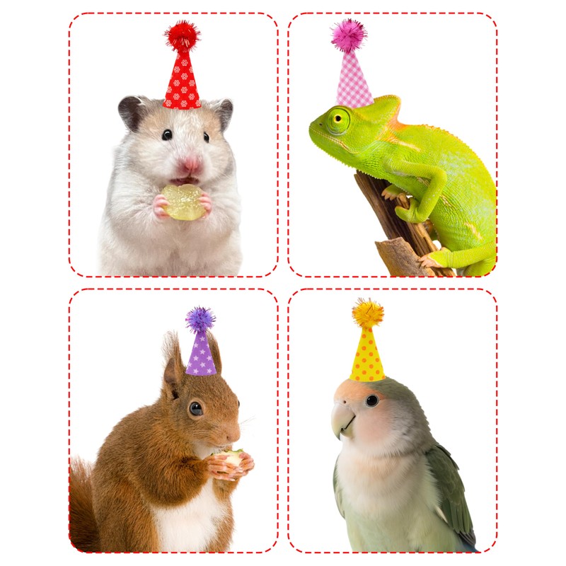 • Occasion: You can use these mini hats for crafts and DIY art, wear them on your little animals(real hamster, snake, lizard, bird and so on), your tiny dolls, toys and animal figures, adorable and warm. You can give these gifts on birthday and holidays, using children's favorite toys which wear the miniature party hats to decorate birthday cake topper is also a good choice. They are excellent photo props, fully unleash your imagination to use these tiny party hats for small animals