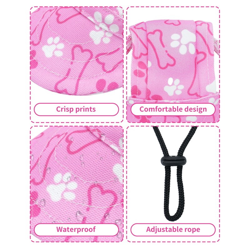 PET SHOW Dog Baseball Cap Paw Print Dog Visors for Medium Large Dogs Waterproof Pet Sun Hats with Ear Holes Adjustable Drawstring Girl Puppy Hat -Pink/L