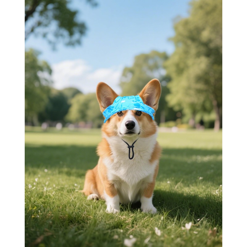 PET SHOW Dog Baseball Cap Paw Print Dog Visors for Small Medium Dogs Waterproof Pet Sun Hats with Ear Holes Adjustable Drawstring Boy Puppy Hat - Blue/M