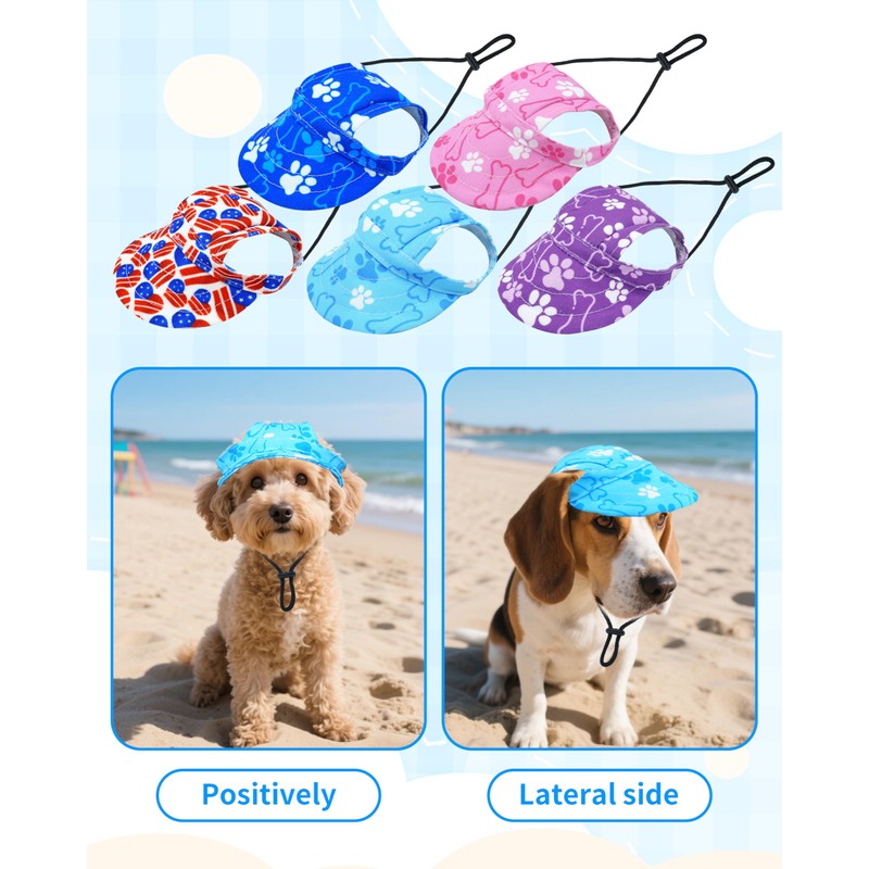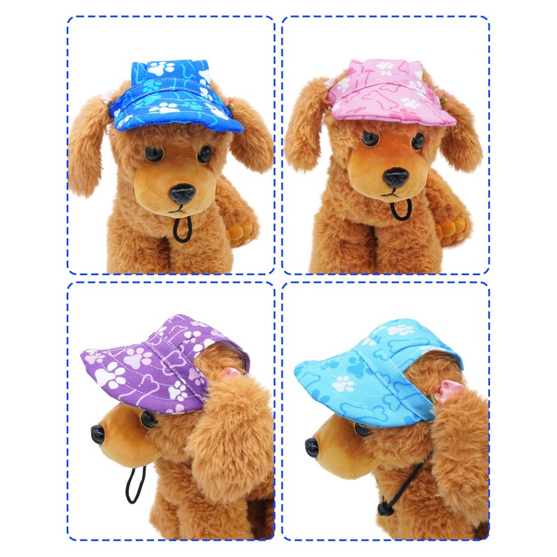- Design: Our dog baseball hat for small dog is printed with dog paw theme patterns, make your pets enough casual and cute. There are 4 different colors to choose: pink, blue, royal blue and purple. Please attention that this package only contain 1pcs sun visor for cats