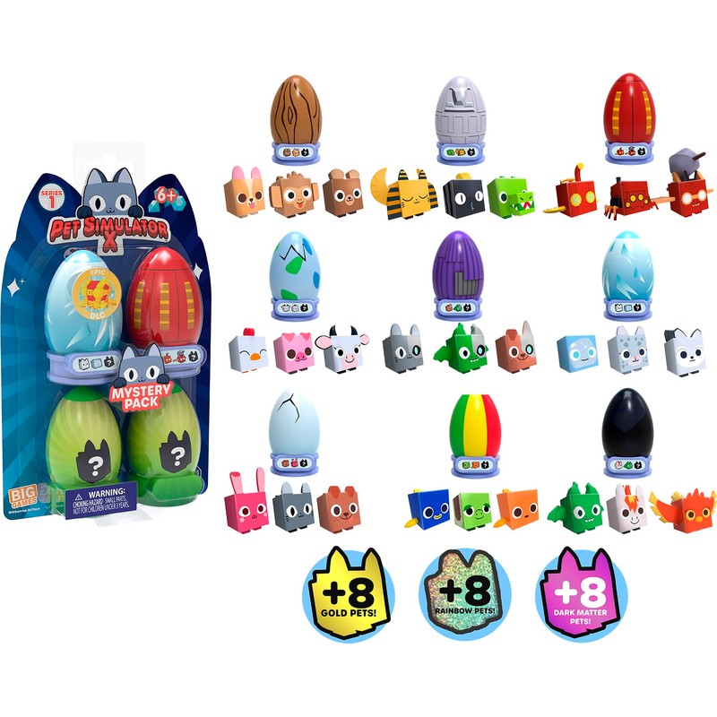 Pet Simulator X - 4 Mystery Figures Eggs - Ages 6 and up - Video Game Characters - Lansay