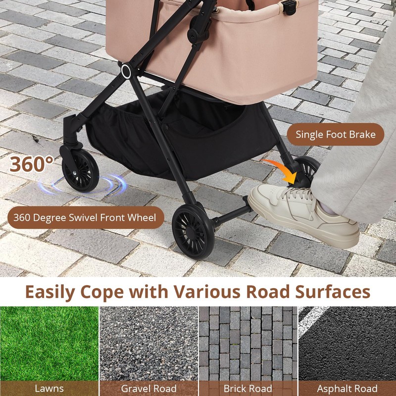 - Smart Wheel System for Smooth Journeys: Engineered with 360° lockable swivel wheels and advanced shock absorption, our dog strollers for medium dogs handle uneven terrain with ease. The foot-activated brake ensures sudden stops are safe and stable, whether you're navigating crowded streets or hiking trails. Never worry about jolts disturbing your pet's comfort.