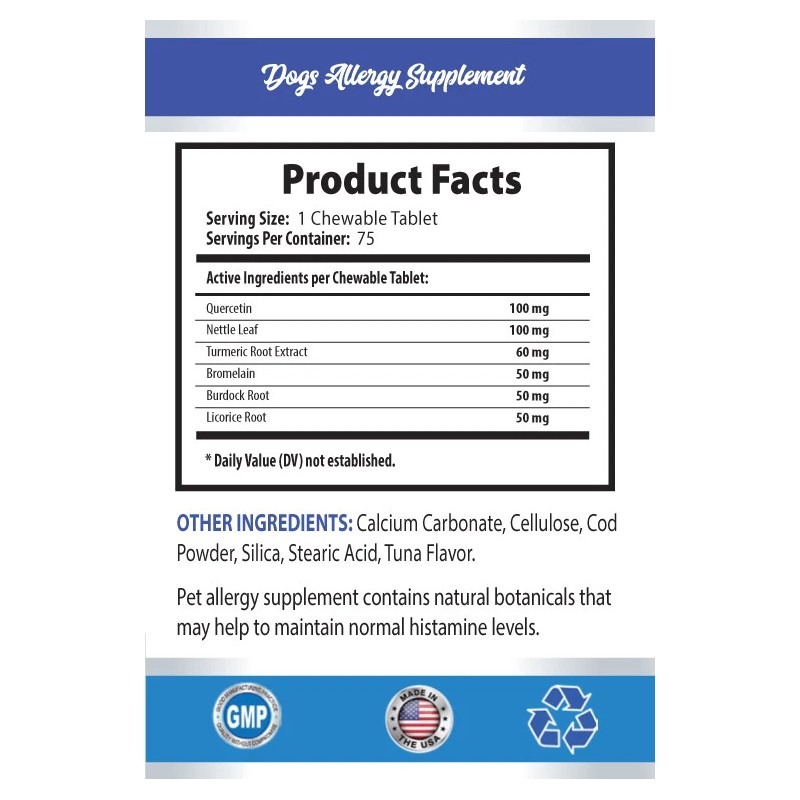 Pet Supplements dog allergy chews -ALLERGY RELIEF FOR DOGS - nettle dog remedy - 1 Bottle 75Tab