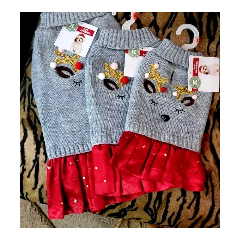 Pet Sweater Dress Reindeer Winter Christmas xs sm med new ea.