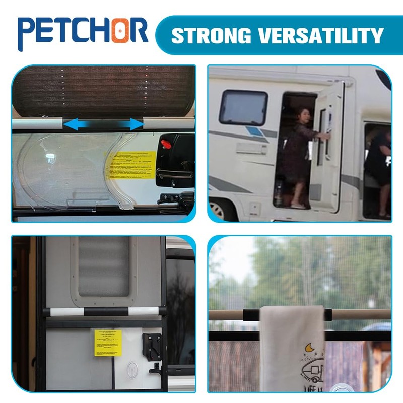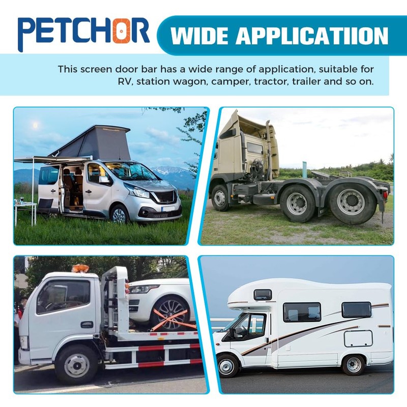 - 【PACKAGE INCLUDE】: The package include 4pcs aluminum tubes, 2pcs plastic couplers, 4pcs corss bar end, 4pcs small screws, 8pcs large screws. This screen door bar has a wide range of application, suitable for RV, station wagon, camper, tractor, trailer and so on.