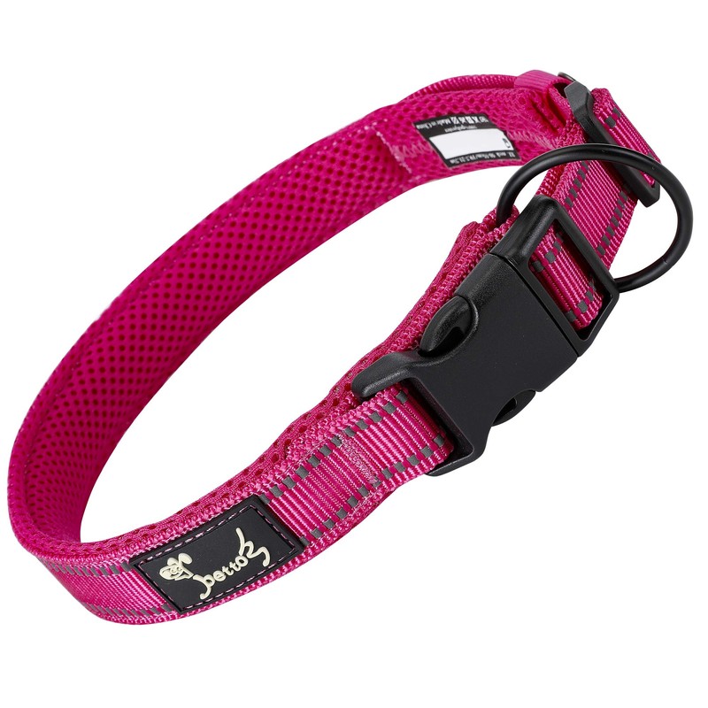 Petcomer Adjustable Reflective Nylon Dog Collar - Padded, Breathable, Anti-Choke, Anti-Rub, with Ring