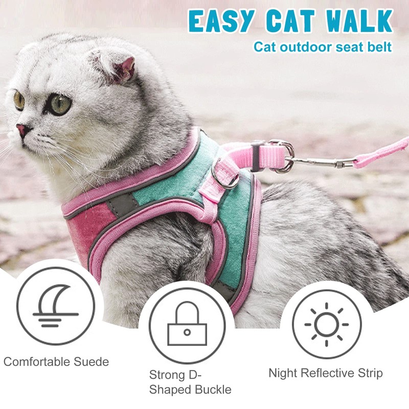 - The design of the cat harness vest distributes the press evenly across the chest and shoulders to avoid choking or neck tension.