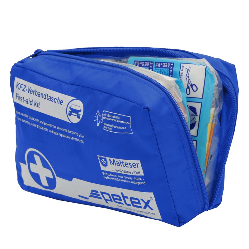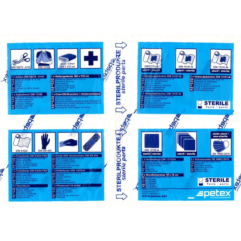 PETEX First Aid Bag Set of 2, Contents According to DIN 13164:2022, Blue