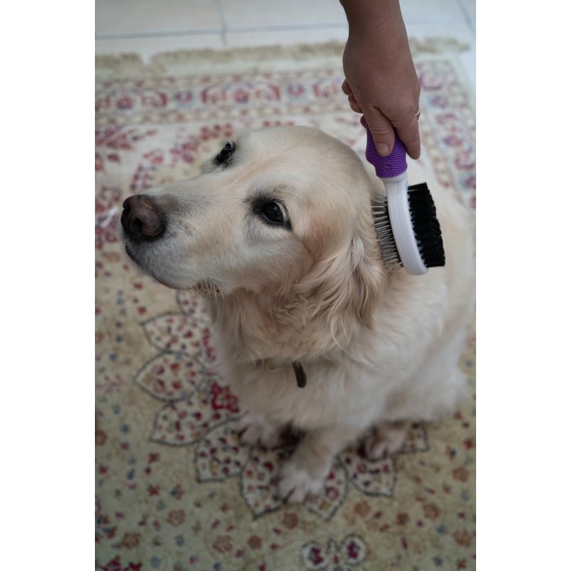- KEY FEATURES: Double-sided design with cushioned bristles for a gentle yet effective grooming experience; Suitable for both cats and dogs