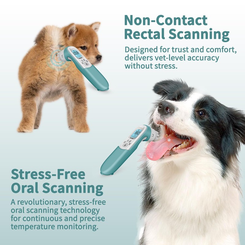 - Flexible Multi-Mode Scanning – Offers stress-free oral temperature monitoring with soft food-grade silicone, plus non-contact rectal scanning using a guiding light and fur-parting comb for hygienic measurement.
