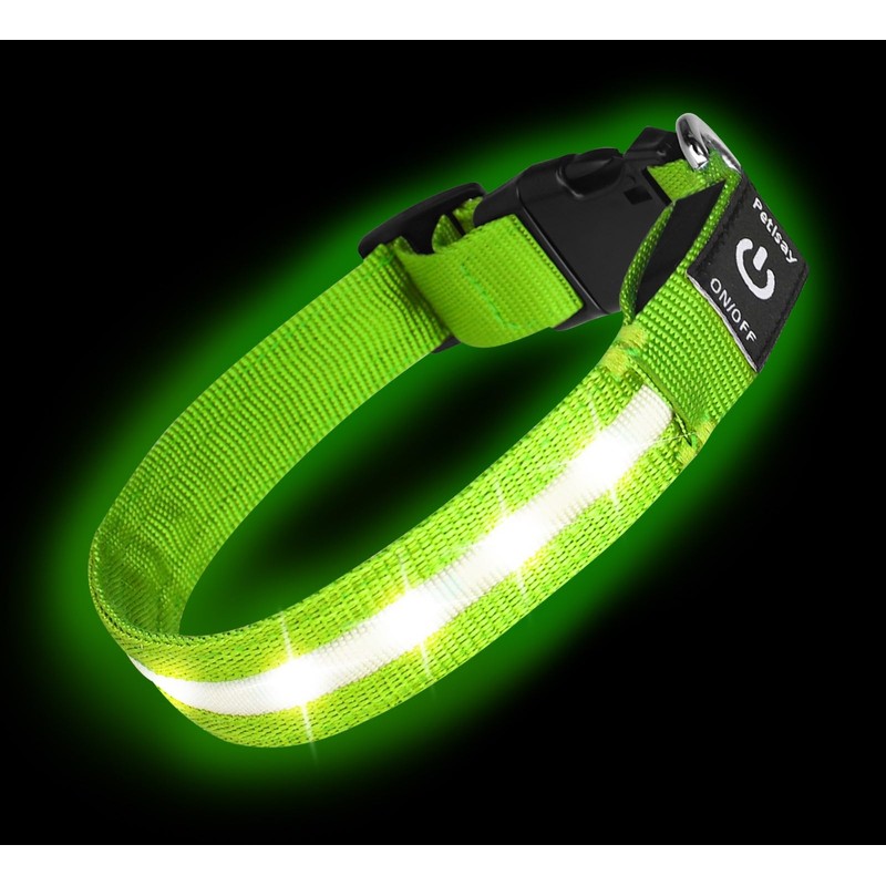 PetIsay Light up Dog Collar - High Visibility & Durable Nylon Material - USB C Rechargeable & Waterproof LED Dog Collar for Night Walking,Lighted Dog Collar Glow in The Dark Flashing(Green,L)