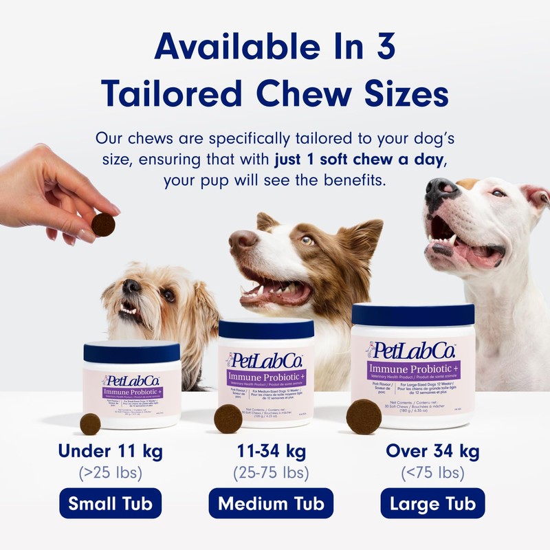 - Tailored Formula - Is your dog paw licking or scratching? Help support their gut and maintain their comfort with our probiotic soft chews. Tailored to small, medium, and large dogs. Watch your dog’s vitality and comfort levels rise as they enjoy these tasty, nutritious chews