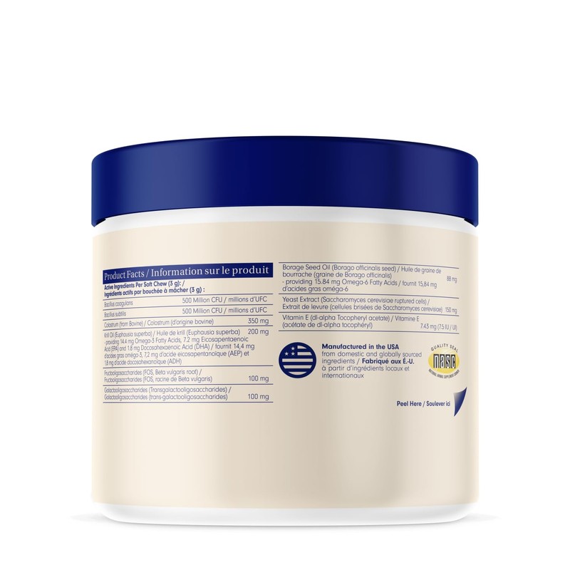 - Powerful Ingredients - Each chew is packed with high-quality probiotics, prebiotics, postbiotics, beneficial omega fatty acids, and antioxidants. Carefully selected to help support your dog’s immune system, skin and digestive health