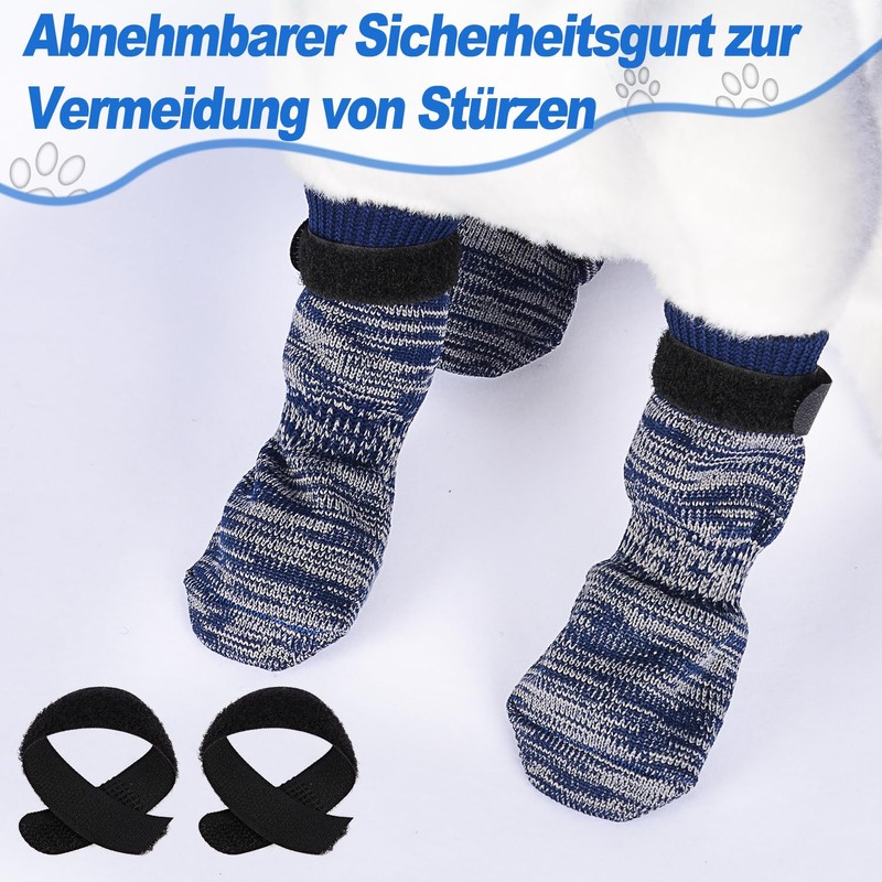 PETLOFT Non-Slip Dog Socks, Pack of 4 Indoor Non-Slip Dog Socks with Adjustable Removable Attachment Strap for Small Medium Dogs Cats Puppies Old Pets (3XL, Dark Blue Paw)
