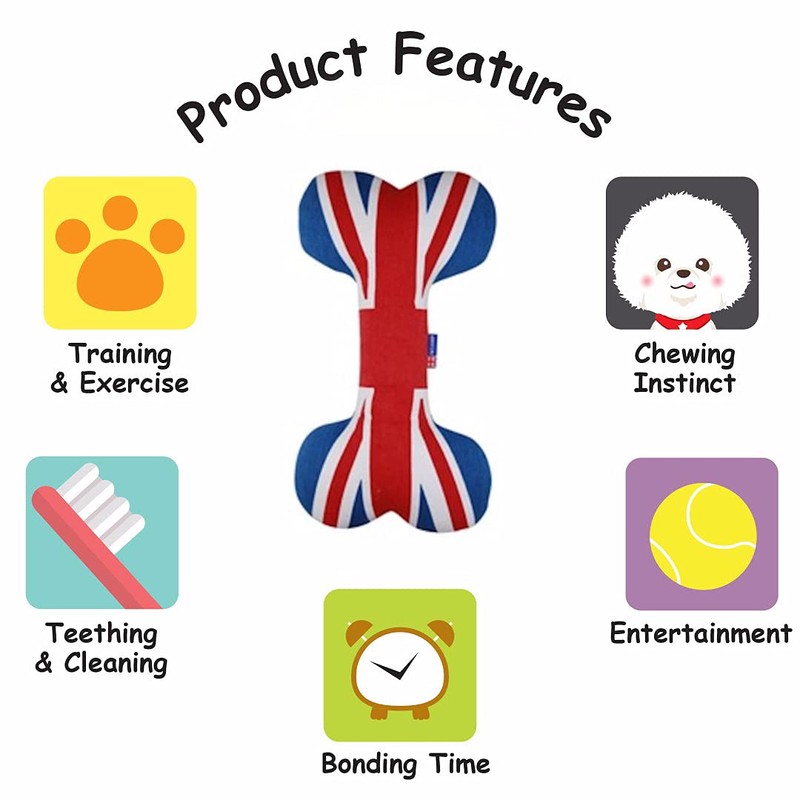 PetLondon British London 13" Union Jack Bone, Canvas Plush Dog And Puppy Toy, Canvas Bone With Squeaker, Cute Fun Royal Queen Union Jack Dog Interactive Toy