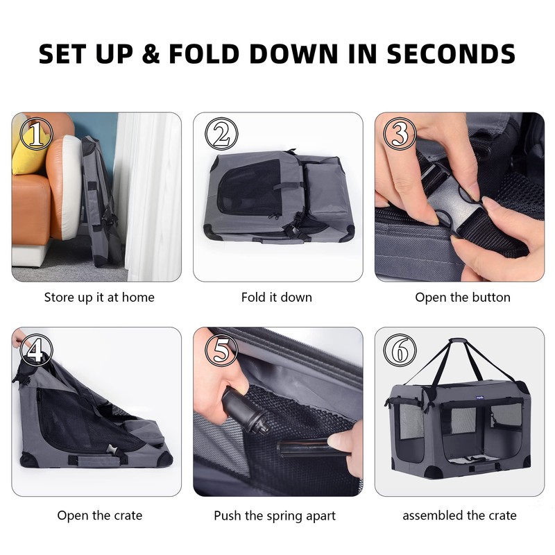- 【Quick Assembly and Easy Folding】The Petprsco Collapsible Dog Crate is designed for swift setup and convenient storage. It assembles in just 30 seconds without tools, allowing for easy transportation and indoor or outdoor use. When not in use, it folds down flat, saving space in your home or vehicle.