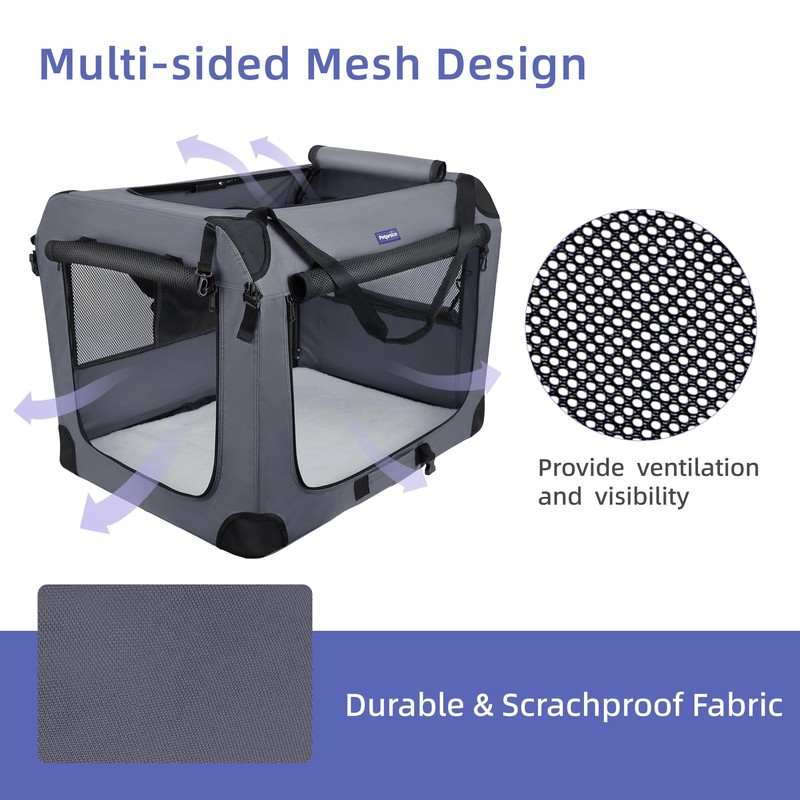 Petprsco 40 Inch Collapsible Dog Crate, Portable Dog Crates for Large Dogs, XL Dog Crate for Travel, 3 Door Soft Dog Kennel with Durable Mesh Windows Indoor & Outside