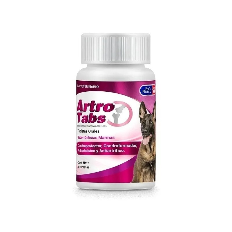 Las tabletas de Artró Tabs se administran por vía oral, ya sea directamente o mezcladas con el alimento. Es fundamental seguir las indicaciones de dosificación que se encuentren en el empaque del producto, ya que la cantidad puede variar según el peso, la edad y la condición del perro.