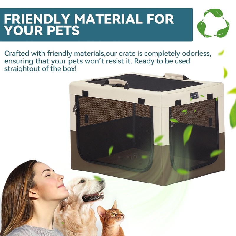 Petsfit 36 inch Large Soft Dog Crate, Adjustable Design Soft Kennel with Chew Proof Mesh Windows & Thicken Mat, Ideal for Indoor & Outdoor Travel Brown