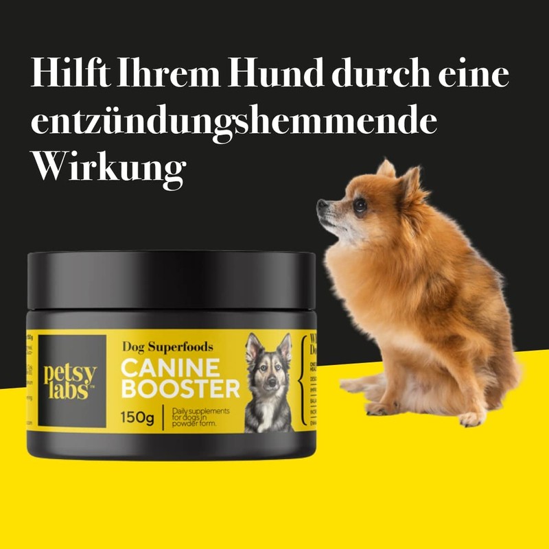 The key to your dog's health is nutritional value. Unfortunately, dog food is little nutritious these days. Food for dogs that do not contain any supplements can lead to poor health and illness. That's why we've put together 28 of the most powerful super nutrients to ensure your dog gets all the necessary nutrients. This revolutionary new formulation has been created to improve the six core areas for your dog's health and longevity: a strengthened immune system, healthy digestion, supple joints, strong bones and teeth, well-moisturized skin, and coat and internal organs. A natural formulation that supports the body holistically and helps your pet look and feel their best for their age. You can also use the measurement units that are on the pack. Drizzle the dietary supplement once a day on the food you give your dog. Stay consistent every day to see the best results. Improve your dog's health and add Petsy Labs Canine Booster to the dog food. Taking these 28 super nutrients will lead to a better quality of life for your dog and an anti-inflammatory effect if the nutrients are taken for a longer period of time. The dietary supplement is easy to use. Each pack includes a measuring spoon that allows you to measure the daily amount corresponding to the size and weight of your dog (see table below). You can also use the units of measurement on the pack. 1 kg - 5 kg heavy dogs. 1g-2g/day = 1/2 spoon/day 5kg-15kg heavy dogs. 2.5 g - 5 g / day = 1 spoon/day 15 kg - 25 kg heavy dogs. 5 g - 7.5 g / day = 1.5 spoons/day 25 kg +. 7.5 g - 10 g / day = 2 spoons/day