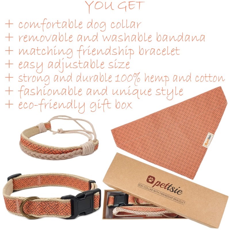 Pettsie Dog Bandana with Collar and Friendship Bracelet, Adjustable Sizes S, M, and L, Removable Bandana Cloth, Gift Box, Dog Lovers, S, Orange
