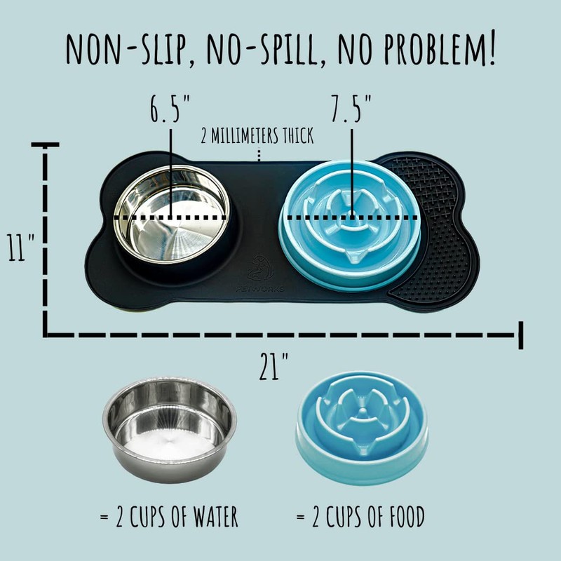 PETWORKS Slow Feeder Dog Bowls with Lick Mat, 5 in 1 Non-Spill Non-Skid Silicone Mat, Dog Food and Water Bowls to Slow Down Eating for Puppy Small Medium Large Breed Size Dogs and Cats