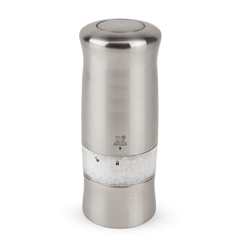 - COMPACT MILLS — With a single touch, the Zeli electric mills light up to deliver freshly ground salt. Bring a contemporary touch to your kitchen. Simply press the button for a quick and precise one-handed operation. Developed in France by Peugeot