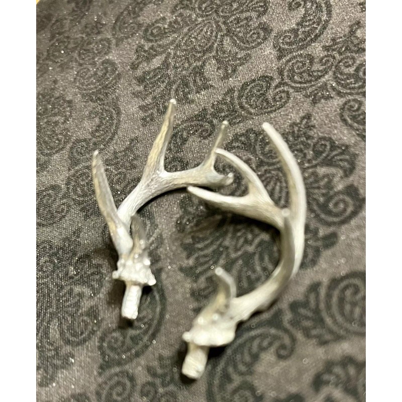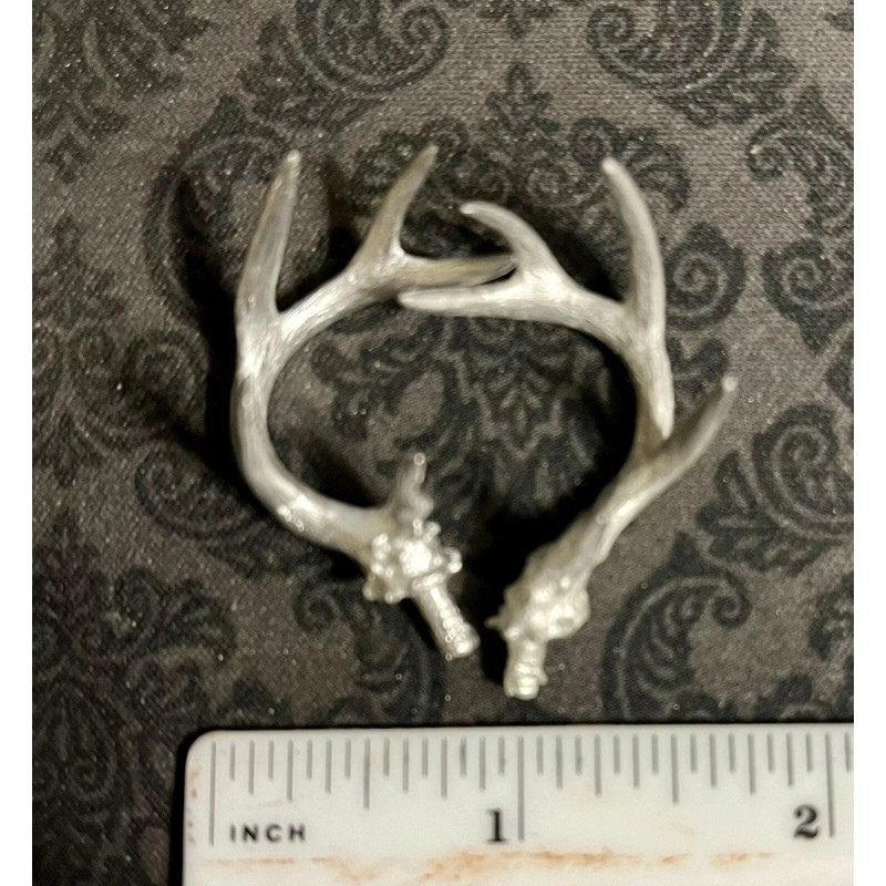 Pewter deer antlers—perfect way to finish your project. Measures 1” wide at widest point; 1.5” long and approx .75 “ deep. We are able to combine shipping for multiple sales.