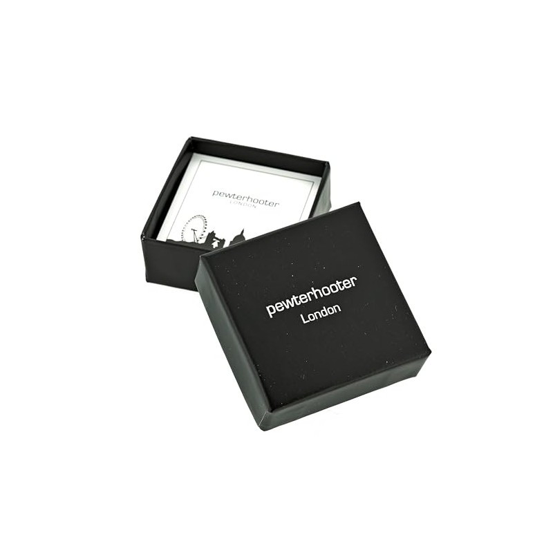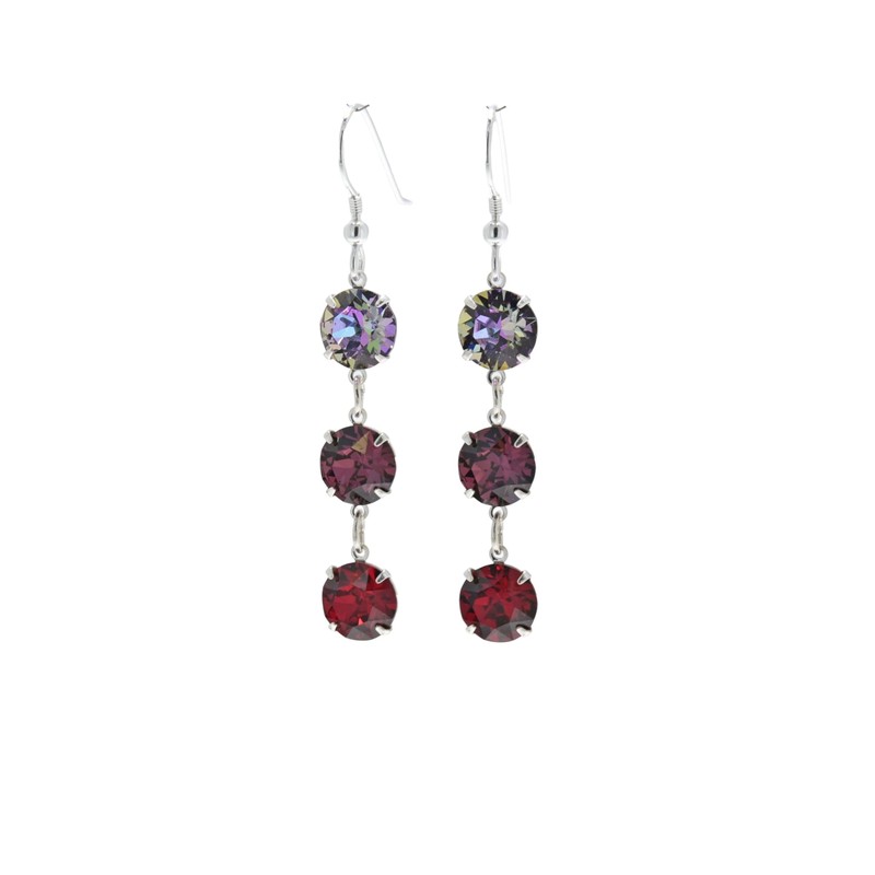 - pewterhooter London Collection. Sparkling Ruby, Amethyst and Manhattan Sunset crystal stones. The earrings measure 8mm x 51mm. Sterling silver fishhooks stamped 925. Silver-plated stone settings. Gift box.