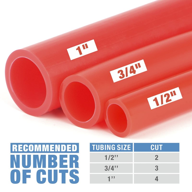 - Radial PEX Pipe Cutter: Simply push the pipe into cutting chamber, rotate the cutter in the direction of arrow. The cutter will automatically adjust to the pipes size and provides correct cutting pressure for a square cut with few rotations.