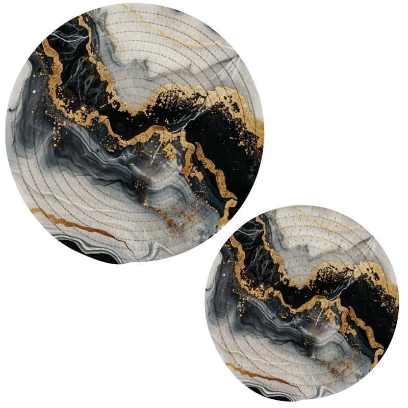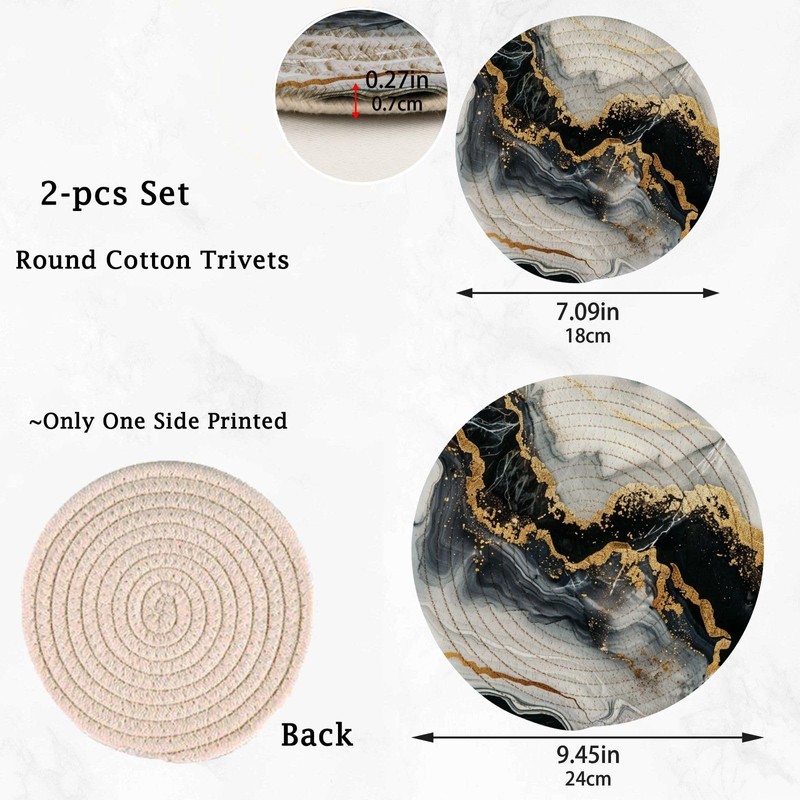 Peystean Kitchen Set of 2 Potholders Trivets, Black White Marble in Gold Frame Woven Hot Pot Coasters Placemats for Cooking Baking Hot Dish Pan Pot Bowl Teapot(7&9 Inches Diameter)
