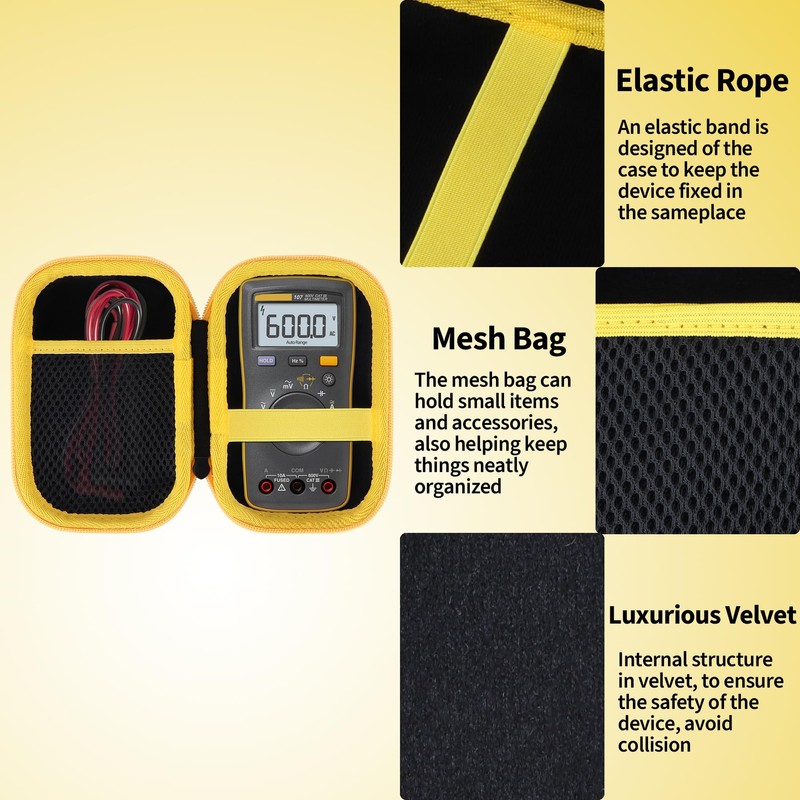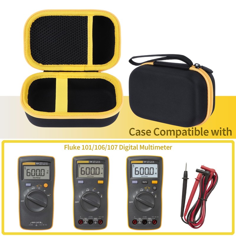 - STYLE AND DESIGN The Peyyargo Digital Multimeter Case Compatible with Fluke 101 is designed to provide comprehensive physical protection. An integrated elastic band prevents the multimeter from slipping. The protective cover is in the signal colours black and yellow: black is dirt-repellent, while yellow offers high visibility and the findability of your protective case - compatible with Fluke 101, Fluke 106 and Fluke 107 - significantly easier