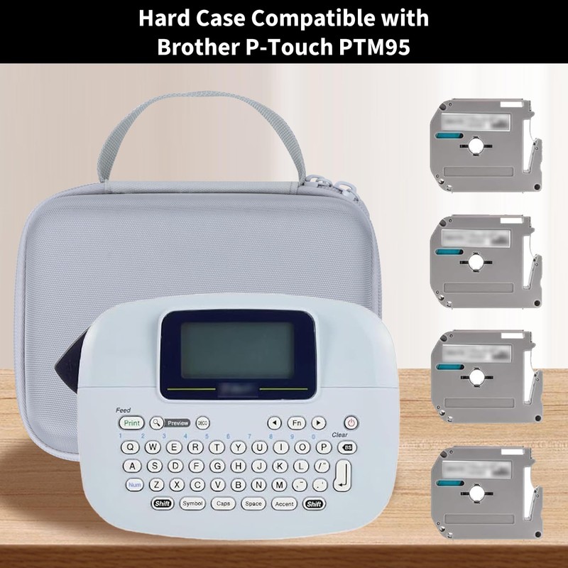 - The Peyyargo storage case for Brother P-Touch PTM95 Handy label maker is constructed with ballistic nylon exterior and shock-absorbing EVA foam. This Brother P-Touch PTM95 Handy label maker protective case water-resistant and wipes clean effortlessly. Provided the Brother P-Touch PTM95 Handy label maker with protection against drops, dust, and moisture. The materials remain flexible without warping or discoloration. Important: Handy Label Maker not included – purchase covers protective case only