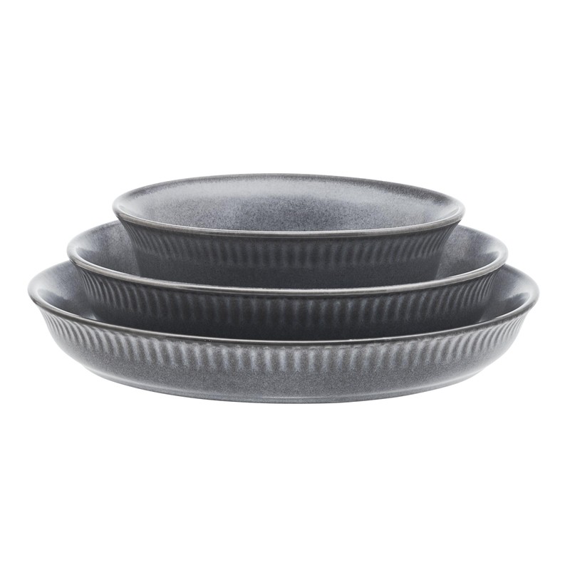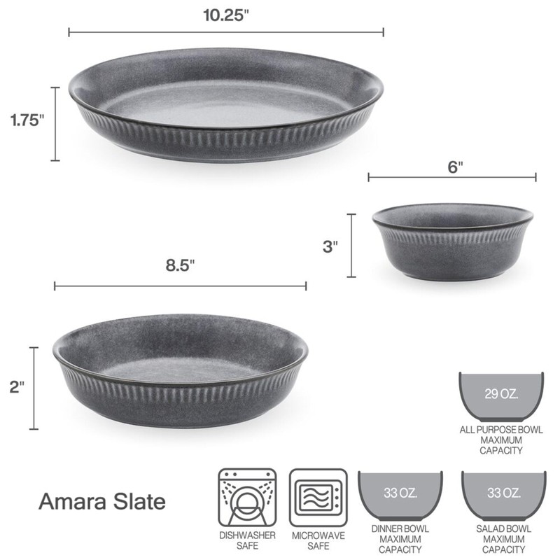 • DINNER BOWL SET: contemporary shapes for the modern lifestyle. This Amara bowl set features contemporary shapes and a slate, semi-matte, reactive glaze finish
