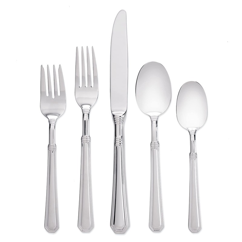 - Included is: One Dinner Knife, One Dinner Fork, One Salad Fork, One Place Spoon, and One Teaspoon.