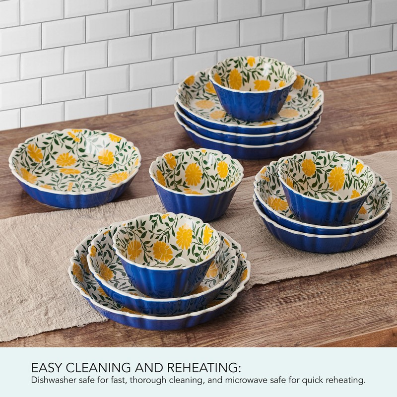 - TIMELESS APPEAL: colorful and stylish with distinct scalloped rims, this charming collection is perfect for everyday dining and casual dinner gatherings